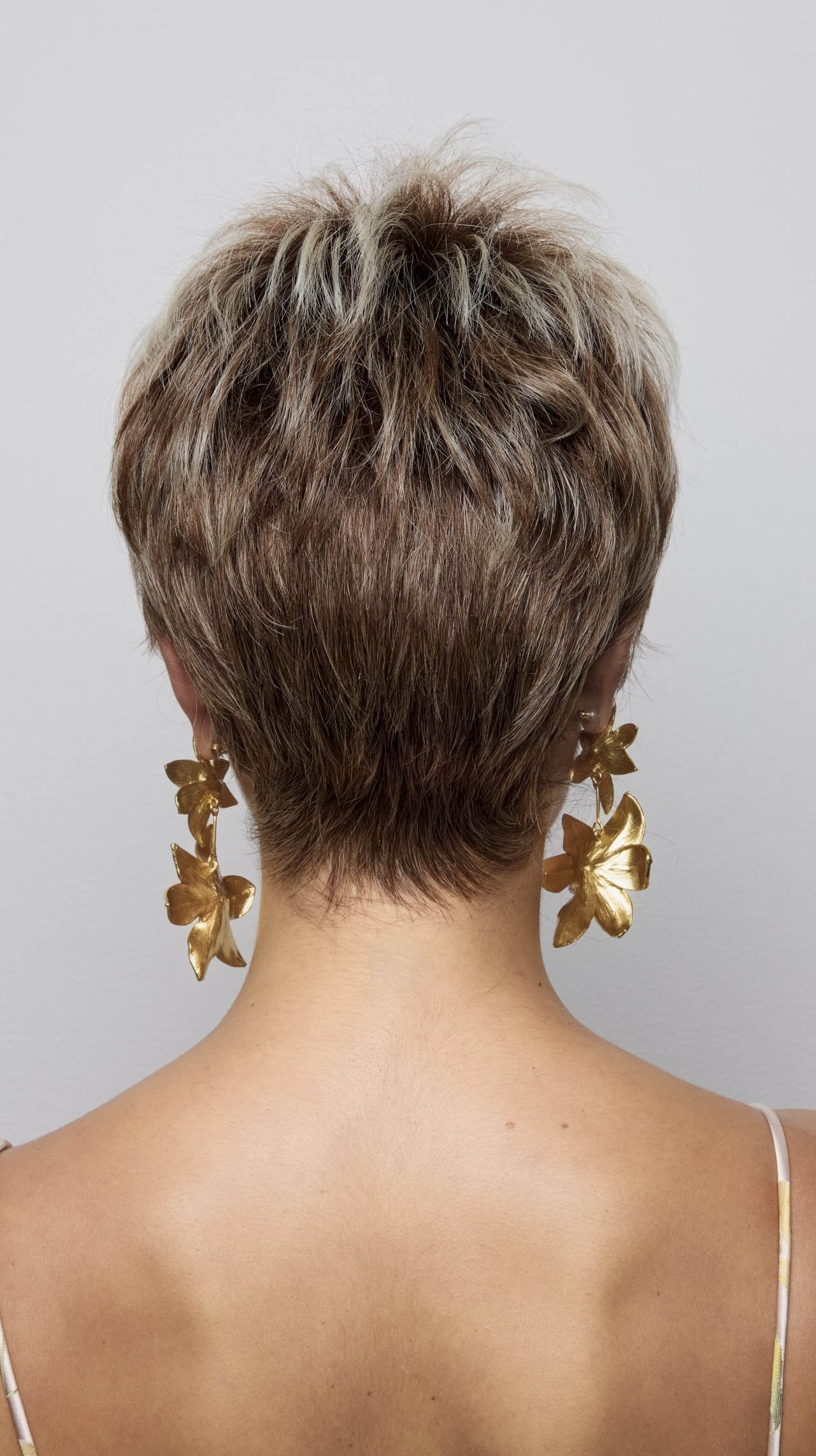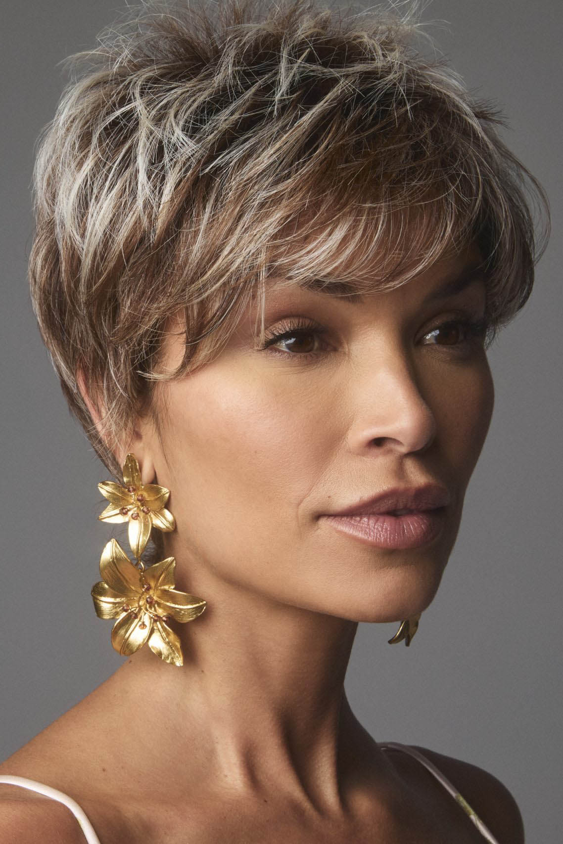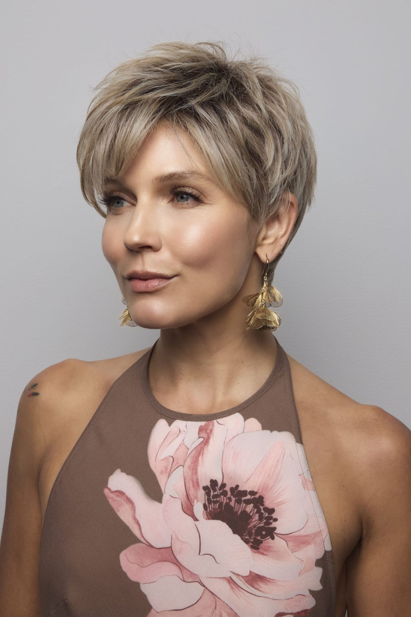 Rin from our Noriko Collection is a short-length, heat friendly wig. This straight, ready-to-wear pixie features a textured cut with a sleek, longer fringe for a stylish, modern look. Rin is machine made with an extended lace front, providing a natural hairline and versatile styling options. Adjustable tabs in the back nape area ensure a secure and comfortable fit. The result is a comfortable fit with a natural look that is both fashionable and easy to wear.