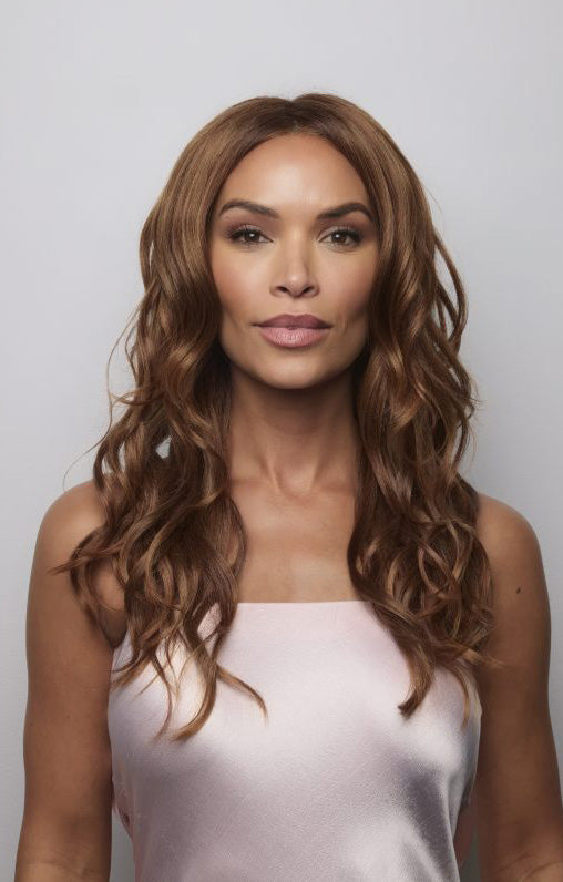 Hana from our Noriko Collection is a long-length blended fiber wig. This medium-wavy, ready-to-wear style features fashionable beach curls with sleek, straighter roots, making it perfect for both casual outings and special occasions. Available in our NM (Natural Movement) fiber, a high-quality blend of synthetic and heat-friendly fibers that reduces shine while maintaining a natural look. Hana is designed with an extended lace front and soft lace part for a natural appearance, with adjustable tabs in the back-nape area for a secure and comfortable fit. The result is a stylish, natural-looking wig that is easy to wear.