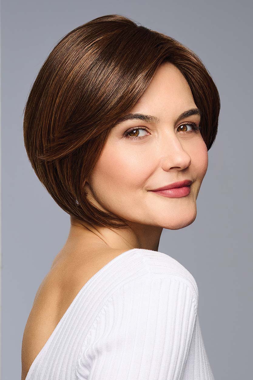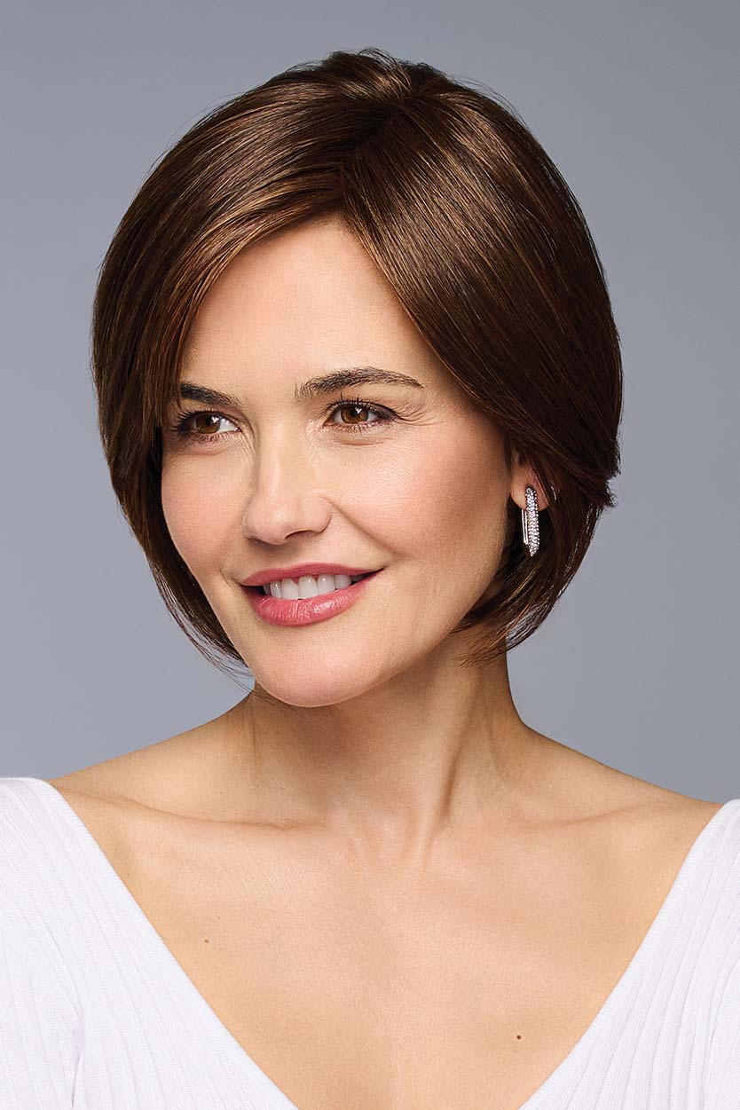 Our bestselling topper now in an 8-inch length. Made with heat-friendly Tru2Life fiber, it has the light density and the natural look you love. With a sheer lace front and monofilament base, you can wear the hair forward or brushed back – and part as you prefer. Blends beautifully with chin-length hair.